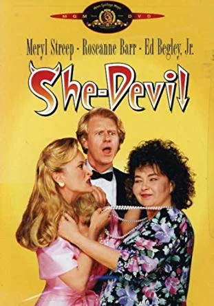 Without further ado, Ladies and Gentlemen, I am pleased to introduce the very first movie of the month. Drumroll please…She Devil, starring the incomparable Meryl Streep and little known actress Rosanne Barr.